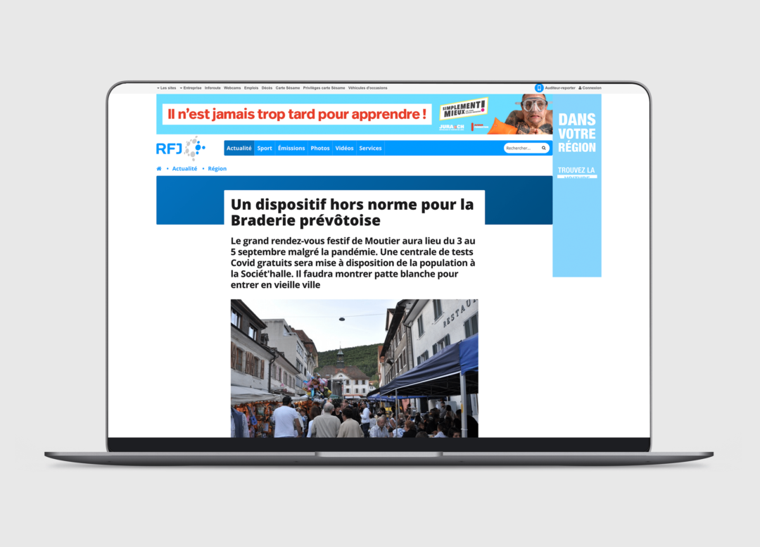 Le visuel de campagne est décliné au format SGA, ainsi qu’en cartons suspendus dans les transports publics jurassiens.