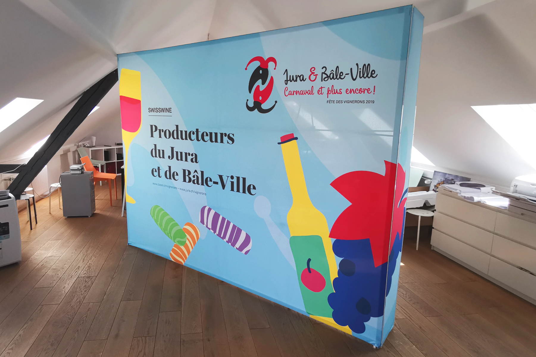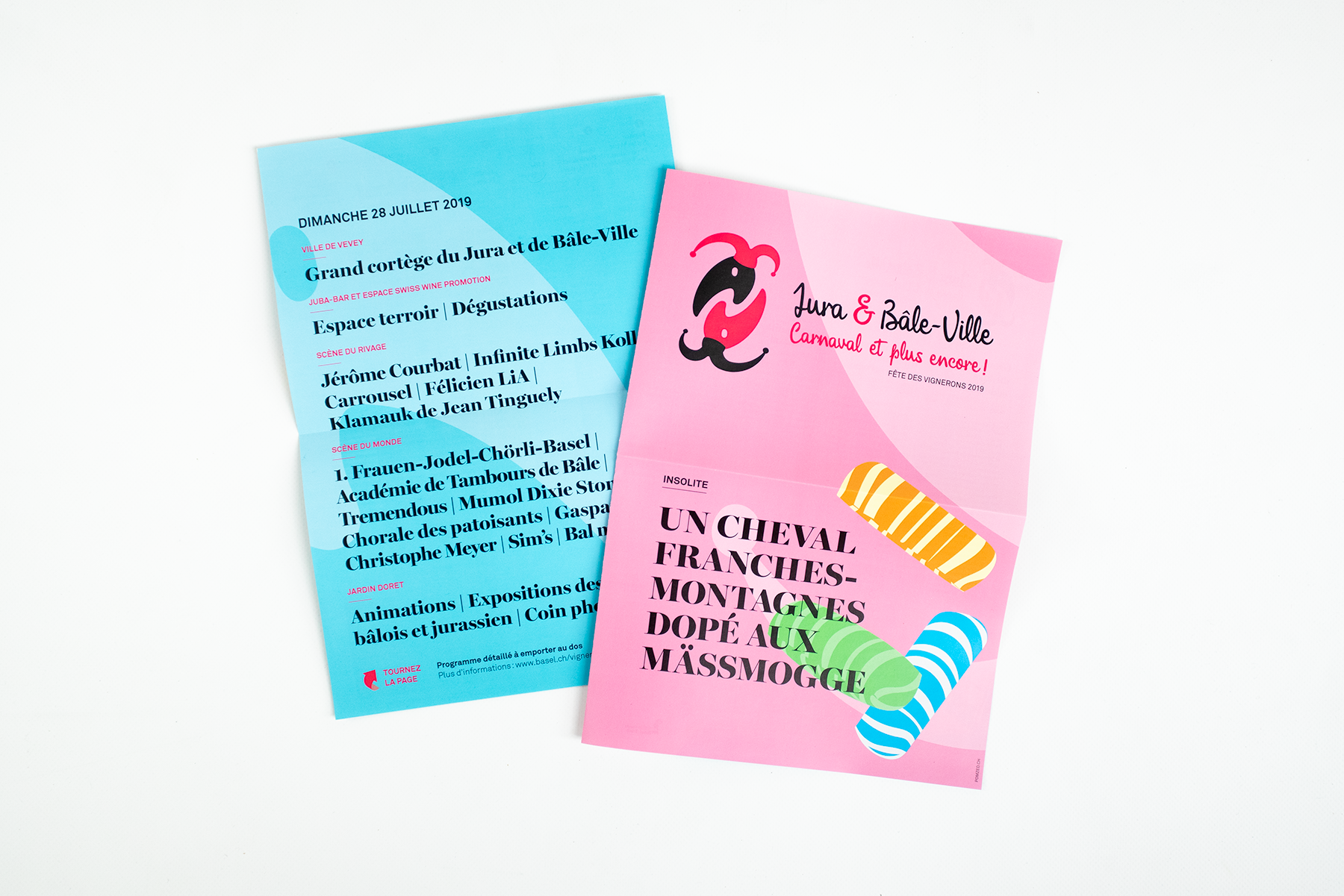 À l’occasion de la Fête des Vignerons 2019, les cantons du Jura et de Bâle-Ville se sont associés et ont mandaté Pomzed Communication pour la réalisation de leur identité graphique, de vidéos et de divers supports imprimés. Les deux cantons ont organisé un programme pour leur journée sous le thème « Jura & Bâle-Ville – Carnaval et plus encore ! ».